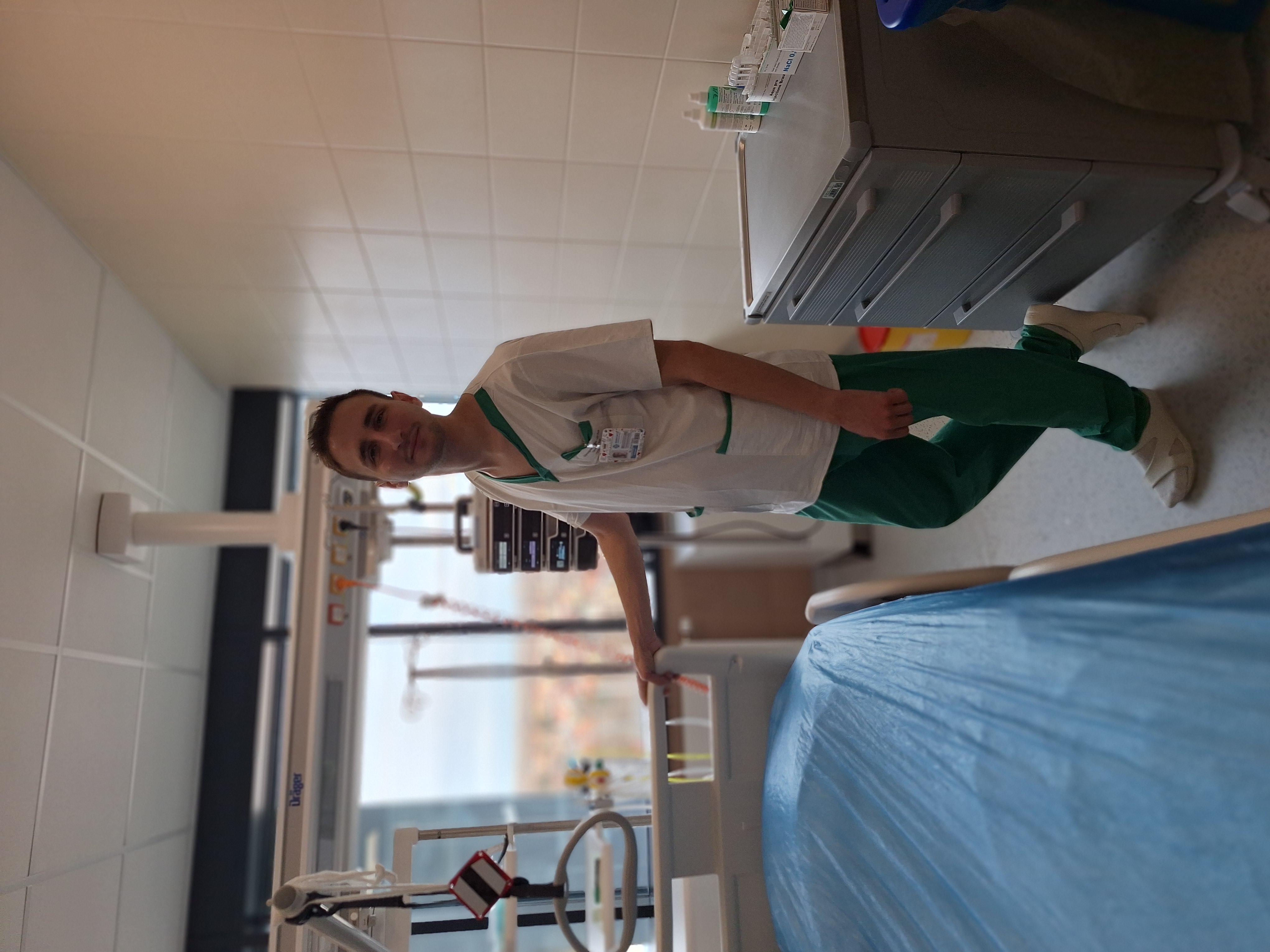 Nadšený optimista. Tak by se dal popsat Jakub Veselý coby zdravotnický záchranář na Centrální JIP chirurgických oborů. Oborem si byl jistý už na konci základní školy, kdy se rozhodl pro studium na zdravotnickém lyceu v Kolíně. „To je klasické gymnázium se zaměřením na zdravotnictví. Měli jsme předměty jako patologie či ošetřovatelství, to mě bavilo. U navazujícího studia jsem váhal mezi zdravotnickým záchranářem a porodním asistentem, tak jsem se přihlásil na oba obory. A na oba mě přijali,“ směje se Jakub Veselý a dodává, že nakonec si vybral zdravotnického záchranáře na Univerzitě Pardubice.