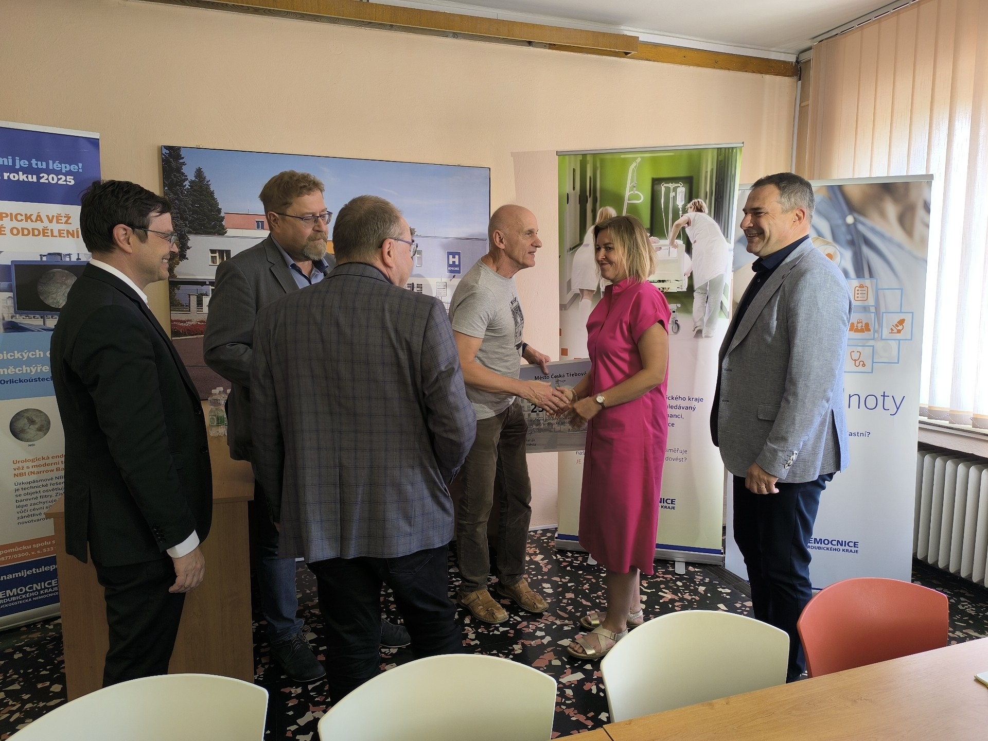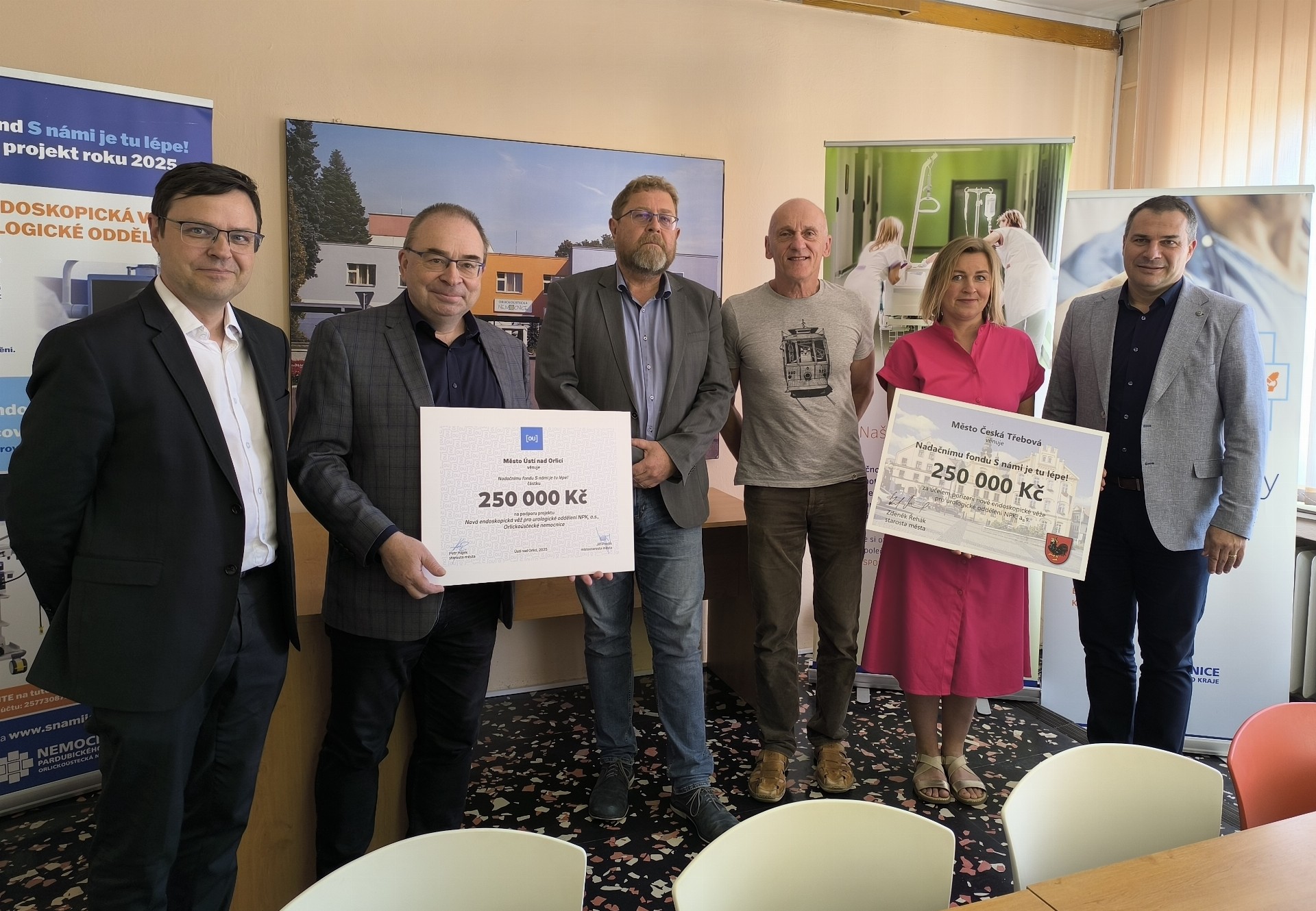 Na fotografii zleva: Jiří Preclík (místostarosta Ústí nad Orlicí), Petr Hájek (starosta Ústí nad Orlicí), Karel Kohoutek (ředitel léčebné péče Orlickoústecké nemocnice), Kvido Štěpánek (předseda správní rady Nadačního fondu S námi je tu lépe!), Petra Válková (1. místostarostka České Třebové), Zdeněk Řehák (starosta České Třebové)