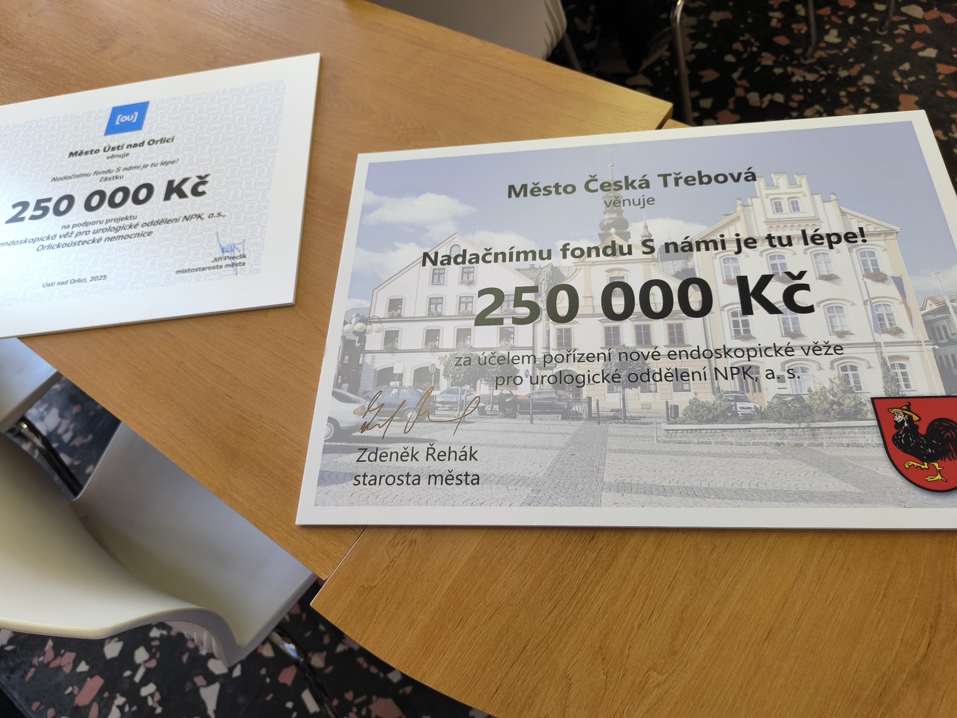 Česká Třebová a Ústí nad Orlicí předaly nadačnímu fondu 500 tis. Kč