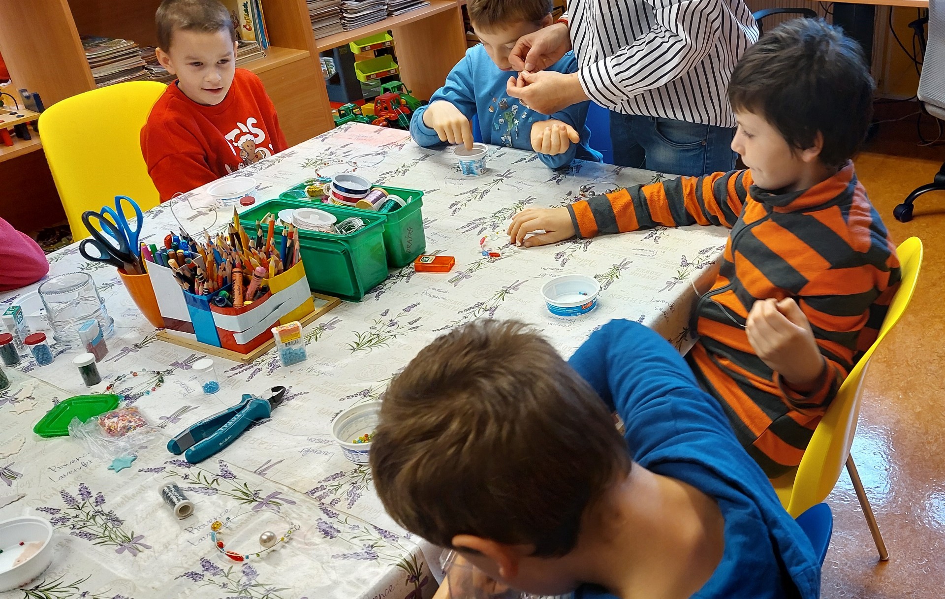 Výtvarná dílna s p. L. Stejskalovou z NNO Cesta pro rodinu Žamberk byla na téma "Drátkování – vánoční ozdoba“, které se také zúčastnili i žáci Speciální ZŠ, MŠ a PrŠ Ústí nad Orlicí.