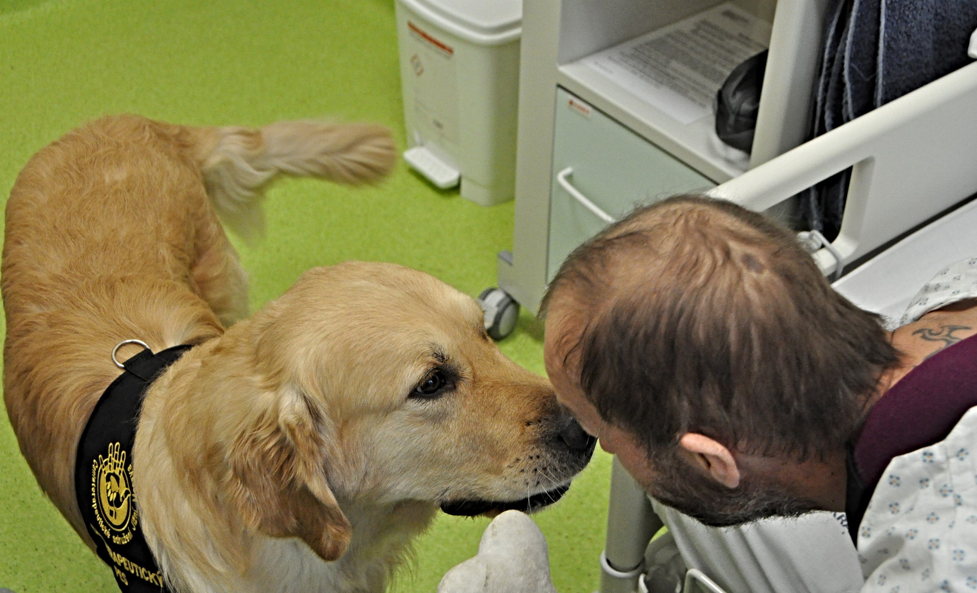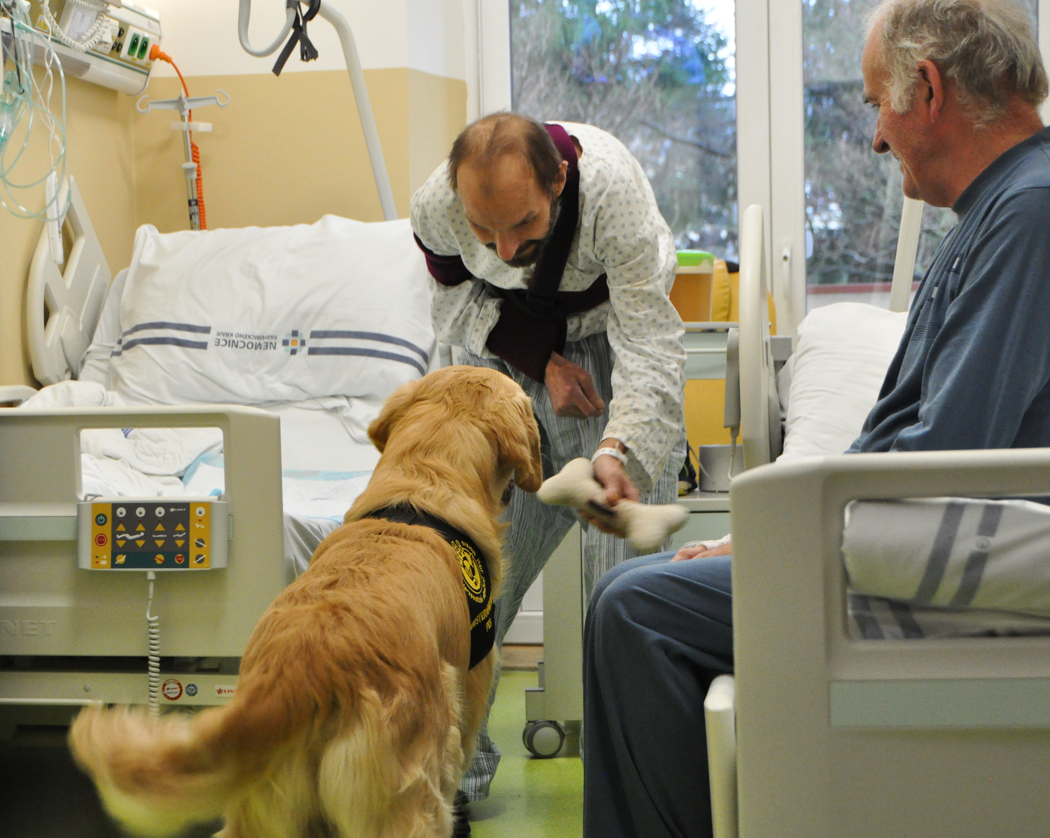 Zlatý retrívr je klidný pes, ví, jak se má chovat, a je empatický, takže vnímá, jak se lidé cítí. Andrea Kobzová zdůrazňuje, že to je základ. Umět se propojit s pacienty. „Já pracuju už pět let na oddělení ARO jako zdravotní sestra a práce s lidmi mě baví. A mám pocit, že canisterapie i práce sestry se tak nějak prolíná.“