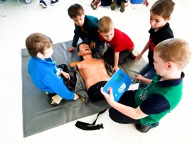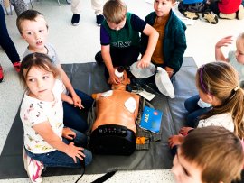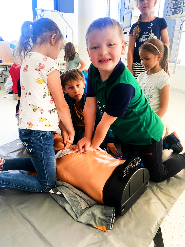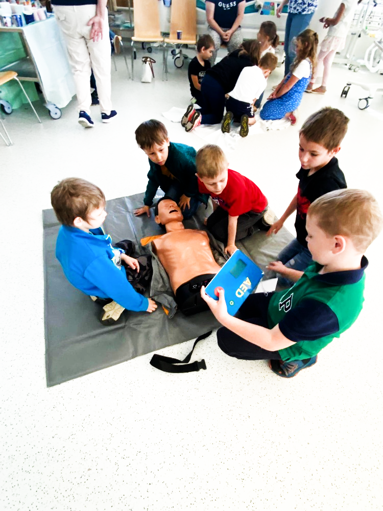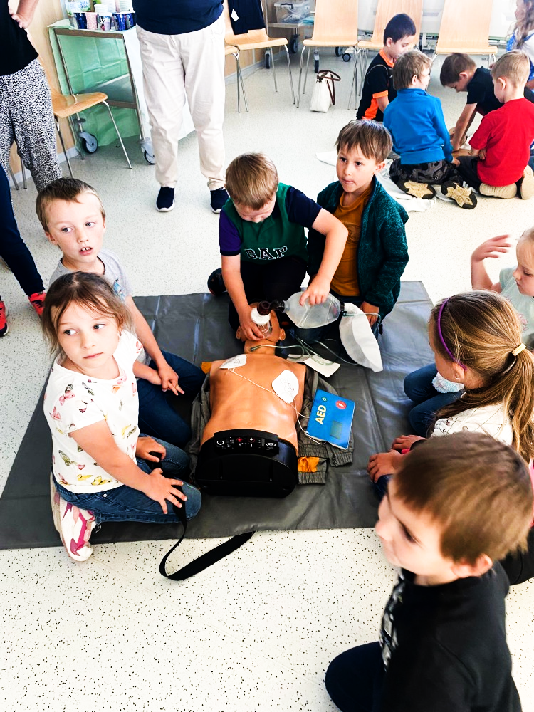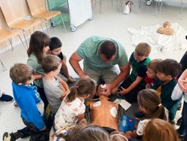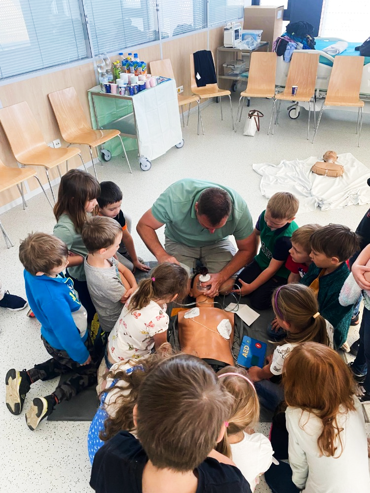 A pak už se děti podívaly do nemocnice, konkrétně do nové budovy s urgentním příjmem. Ve druhém patře navštívili přímo pracoviště doktorky Pfeiferové, tedy jednotku intenzivní péče interních oborů. Lékaři zde dětem nejdřív vysvětlili, co dělat, když se ocitnou v situaci, kdy je někomu potřeba poskytnou první pomoc. A pak si to všichni školáci vyzkoušeli na figuríně. „To je bavilo hodně a na to, jak jsou malí, jim to šlo moc dobře,“ pochválila prvňáčky Lucie Valová.