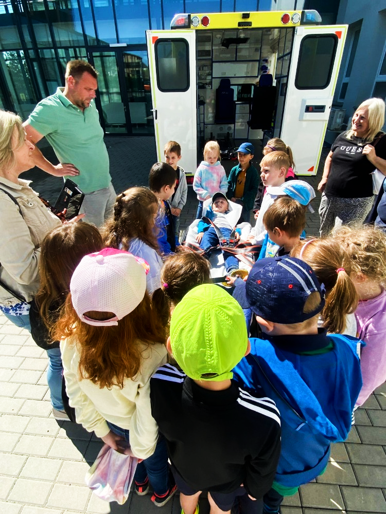 Závěr půldenní exkurze patřil prohlídce Dětského oddělení včetně zahrady. Tam se dětí ujaly učitelky ze ZŠ a MŠ při nemocnici, které si pro ně připravily další program s tématikou první pomoci. Školáci si třeba zopakovali důležitá čísla pro tísňové volání hravou formou spojování a vybarvování obrázků na pracovním listu, ale také si mohli v herně vyzkoušet interaktivní hračky.
