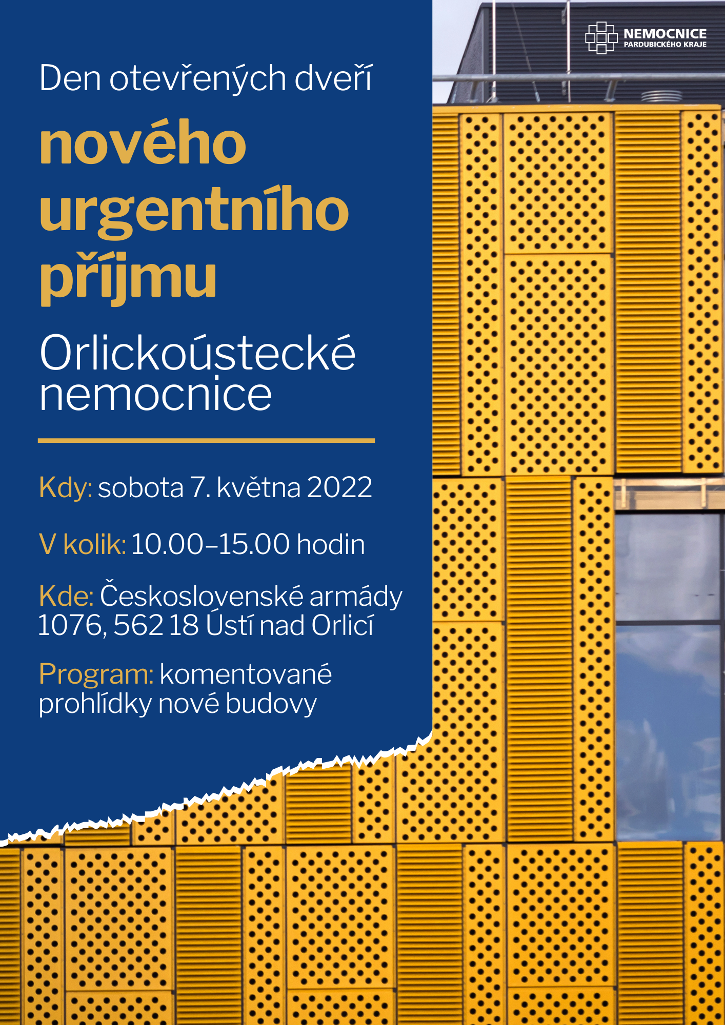 Pokud i vy chcete nahlédnout do budovy, která se stává srdcem celého areálu Orlickoústecké nemocnice, přijďte v sobotu 7. května 2022 od 10 do 15 hodin.