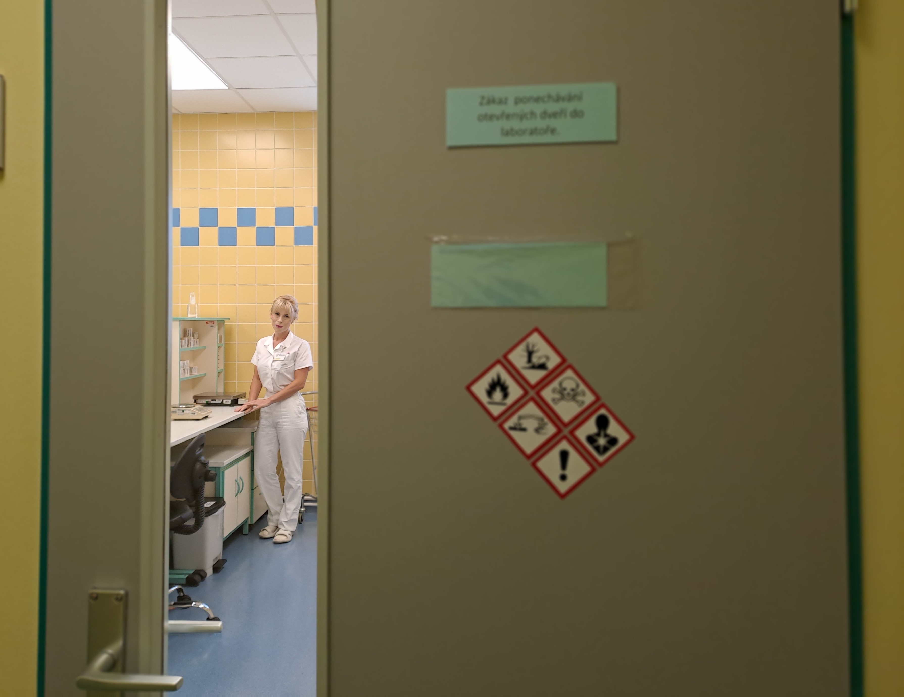 Laboratoř pro přípravu léčiv má vyšší úroveň čistoty a danou teplotu. To znamená, že tam nemůže přijít každý a nelze také kvůli prachu a teplu otevírat okna, proto v místnosti stále běží klimatizace. Jedním z nejdůležitějších přístrojů pro přípravu léků jsou digitální váhy, v laboratoři je jich hned několik: „Liší se mírou přesnosti, je to od půl gramu po miligramy,“